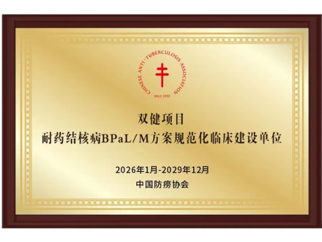湖南省胸科医院荣获首批“耐药结核病BPaL/M方案规范化临床建设单位”称号