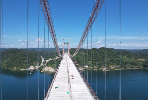 湖南在建跨径最大悬索桥工程洞庭溪沅水特大桥贯通
