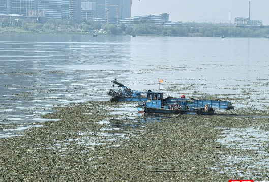 湘江水位上升漂浮物增多 长沙抢抓晴好天气开展清漂作业