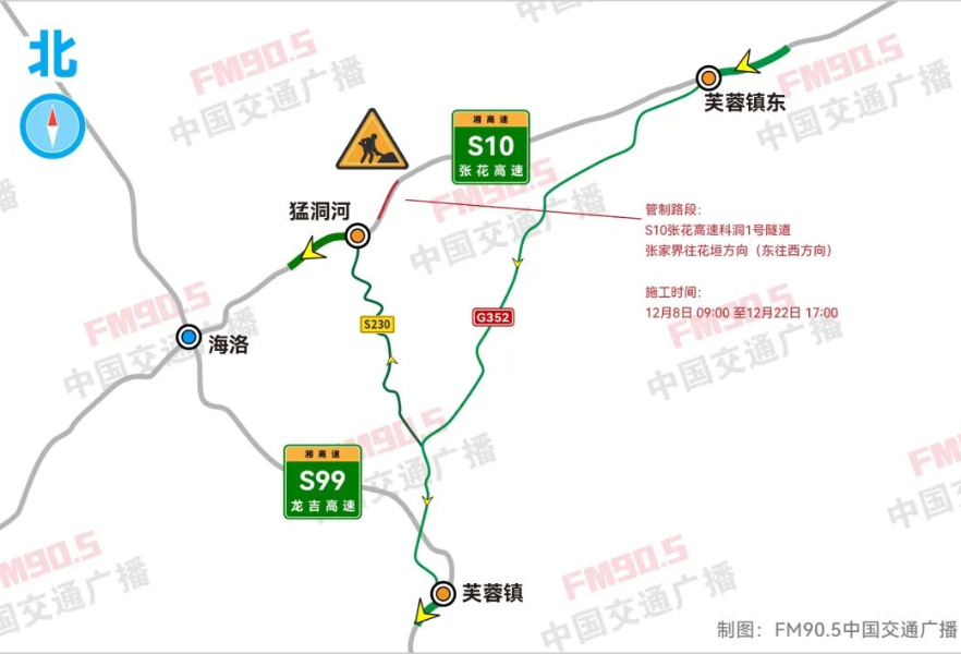 湖南S10张花高速一路段即将进行封闭施工,为期半个月